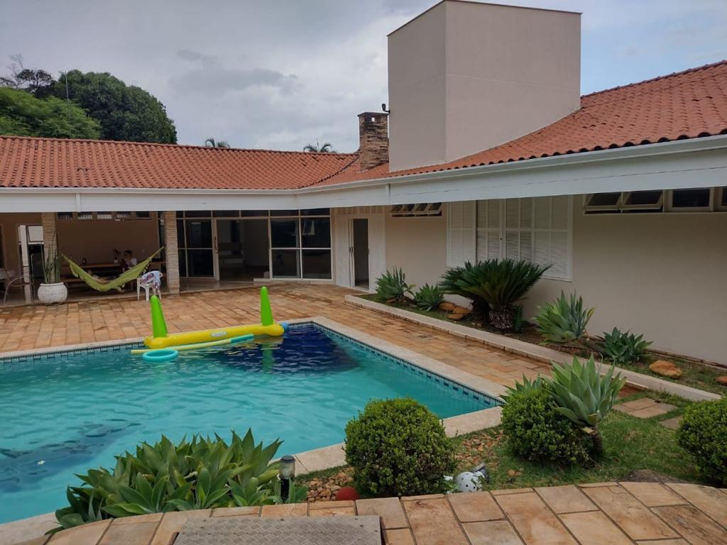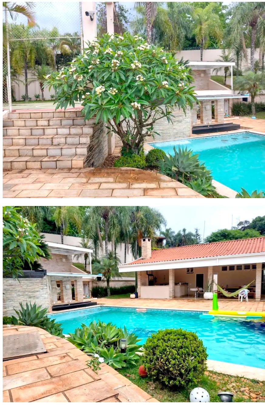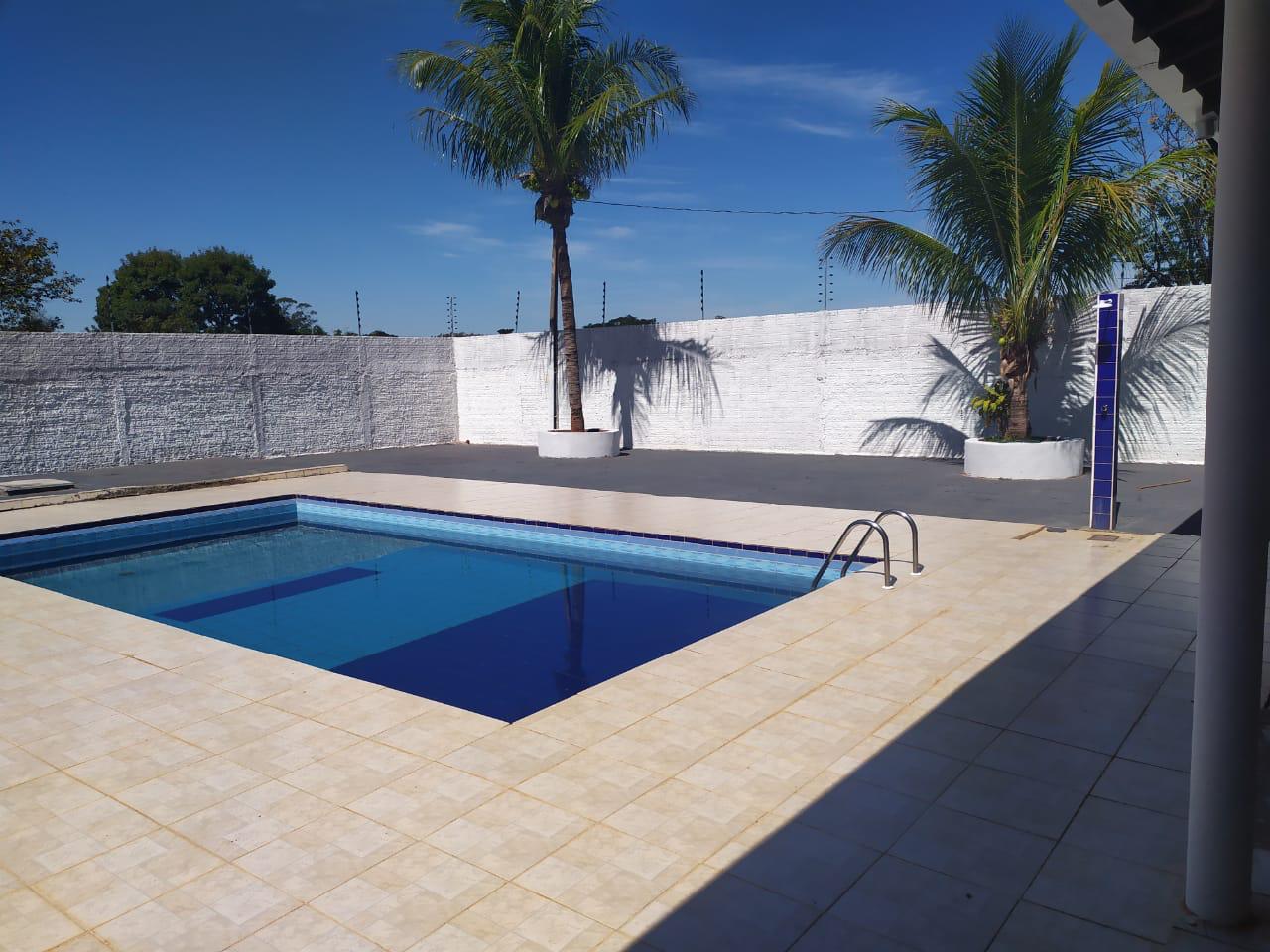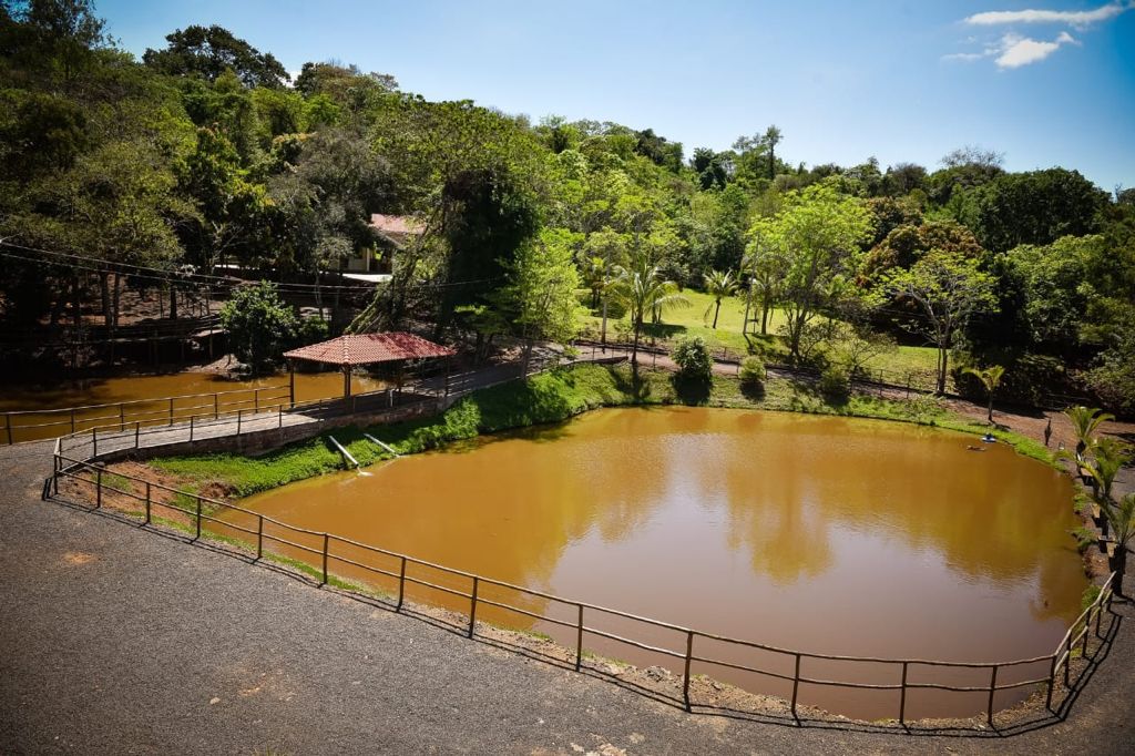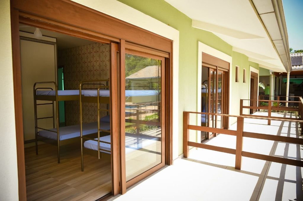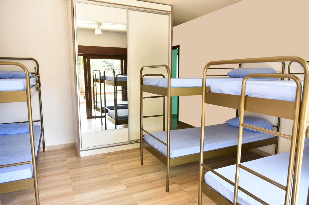 Ambientes equipados com piscina, academia, campo e quadra para esportes, refeitório, além de uma área ampla.