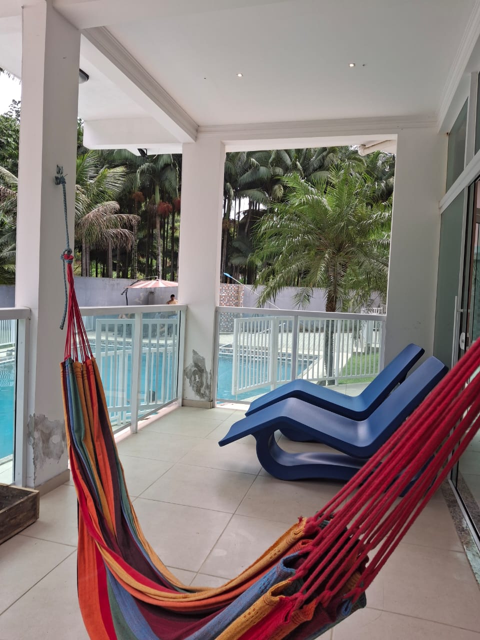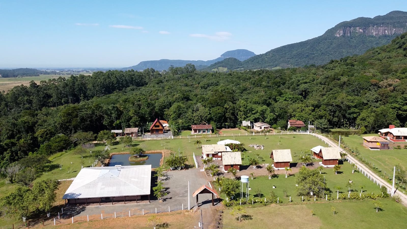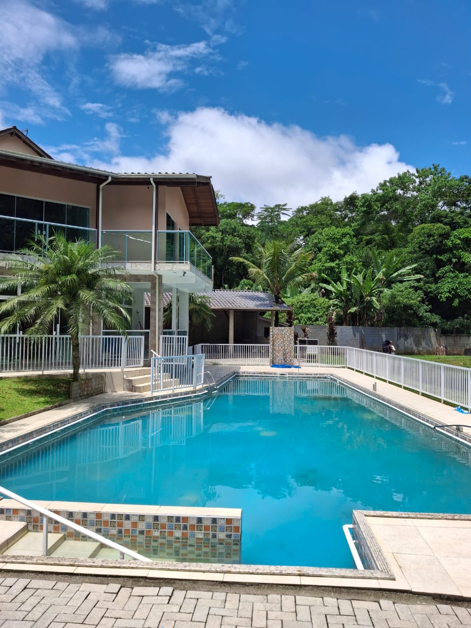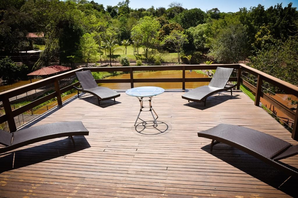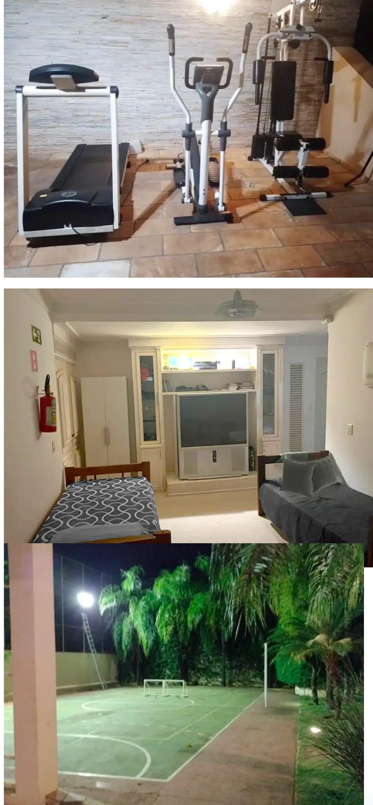 Ambientes equipados com piscina, academia, campo e quadra para esportes, refeitório, além de uma área ampla.